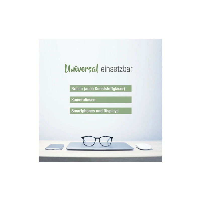 Eignet sich für Brillen und Kameraobjektive aller Art – vor allem auch für Sportbrillen, z. B. beim Fahrrad- oder Skifahren